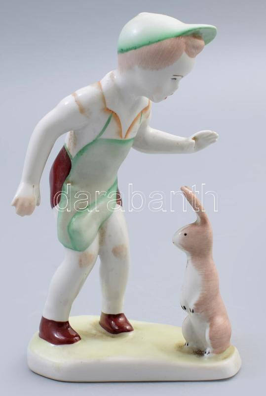 Aquincum nyulas fiú. Kézzel festett, jelzett, némi tisztításra szorul, m: 14 cm