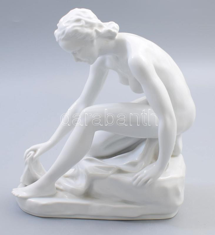Herendi "A forrásnál" szobor. Terv: Donner Mária Gertrúd (1902-1986). Fehérmázas, jelzett, hátán egy ütődésből induló repedésvonallal, m: 24 cm