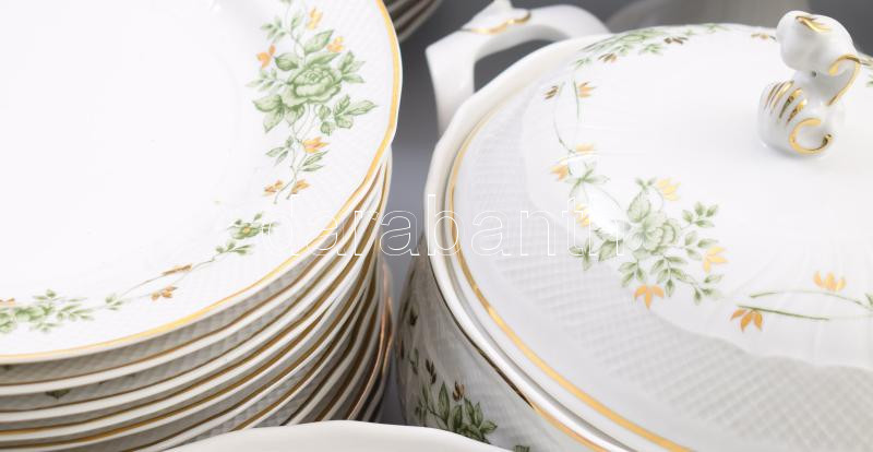 Hollóházi Erika mintás 82 részes étkészlet. Jelzett, jó darabokkal, ki...