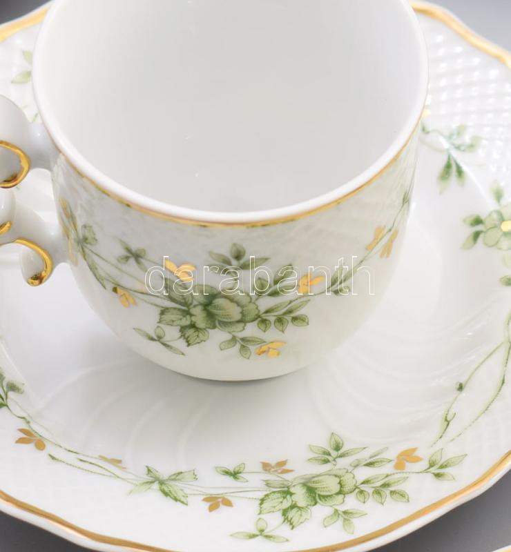 Hollóházi Erika mintás kávés készlet. Jelzett, minimális pattogzással,...