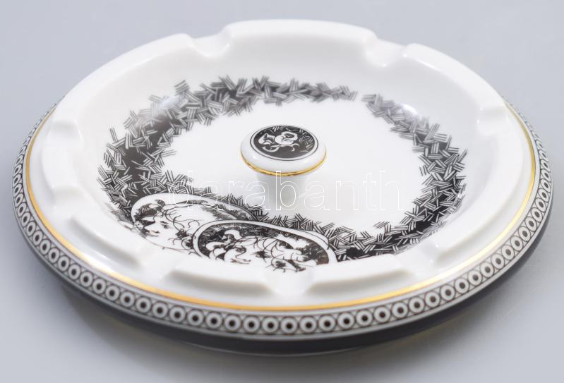 Hollóházi Jurcsák László által tervezett hamuzó, matricás, jelzett, d: 12,5 cm