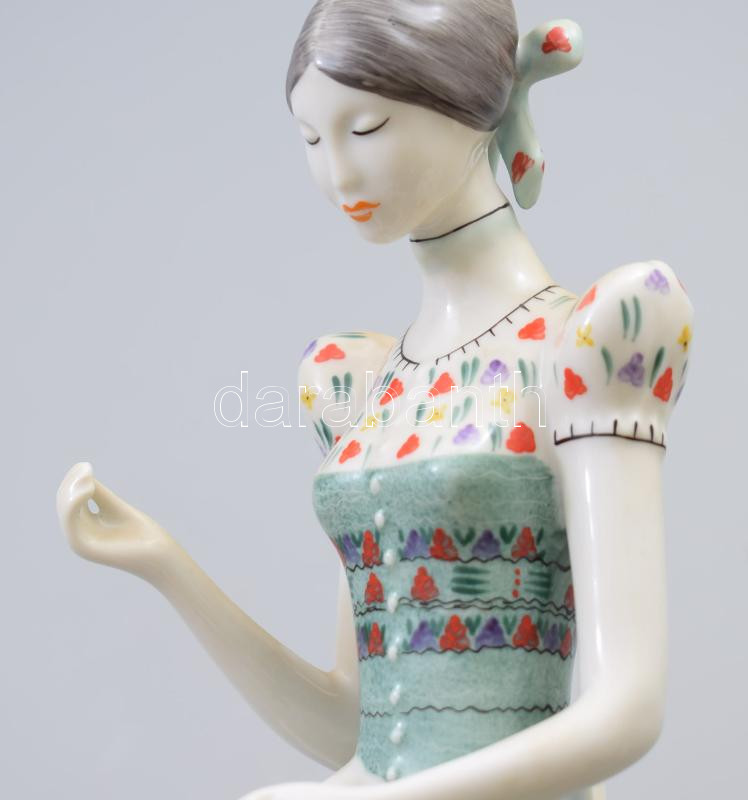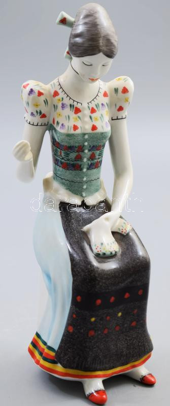 Hollóházi hímző lány. Terv.: Torma Istvánné. Jelzett, hibátlan, m: 23,5 cm