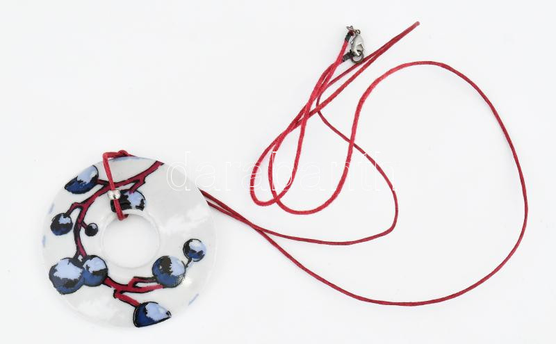 Hollóházi porcelán nyaklánc medál, jelzett, kézzel festett, hibátlan d...