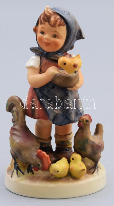 Hummel kislány tyúkokkal, jelzett, retaurált, m: 12 cm