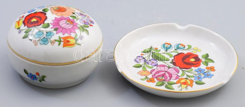 Kalocsai bonbonier és hamuzó, jelzett, kis kopással.