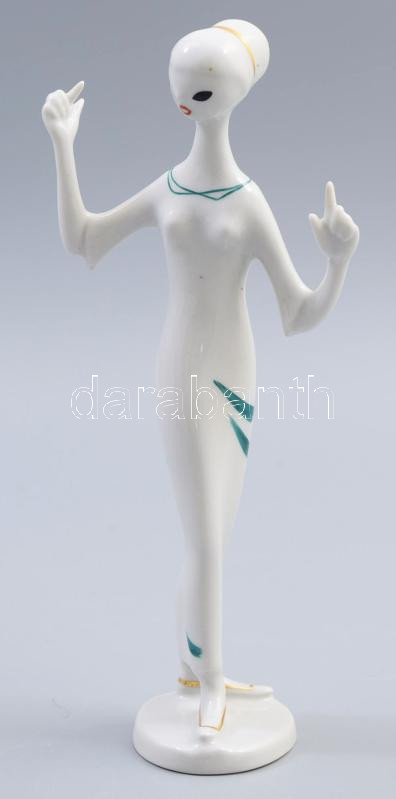 Kispest Porcelán táncoló lány. Jelzett, hibátlan, m: 18,5 cm