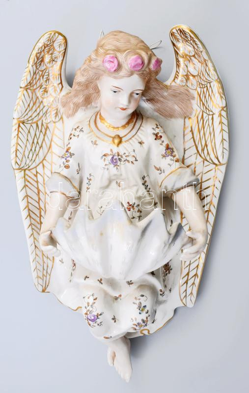 Meissen kagylót tartó angyal figurájával díszített szenteltvíztartó, j...