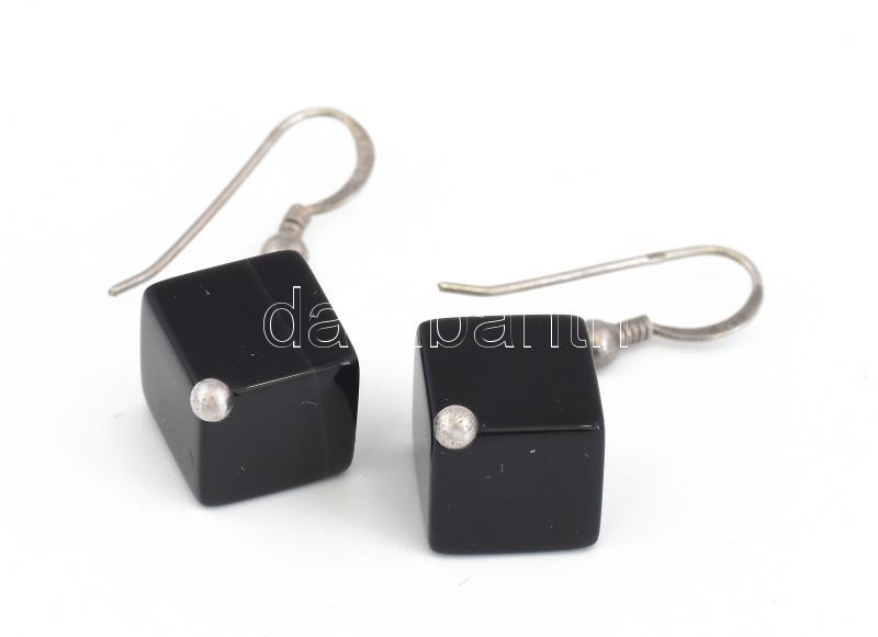 Ezüst (Ag) fülbevaló pár, fekete kocka díszítménnyel, jelzett, bruttó: 6g