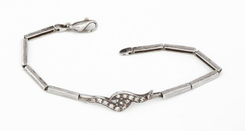 Ezüst (Ag) pálcás karkötő, kövekkel, jelzett, bruttó: 7,5g