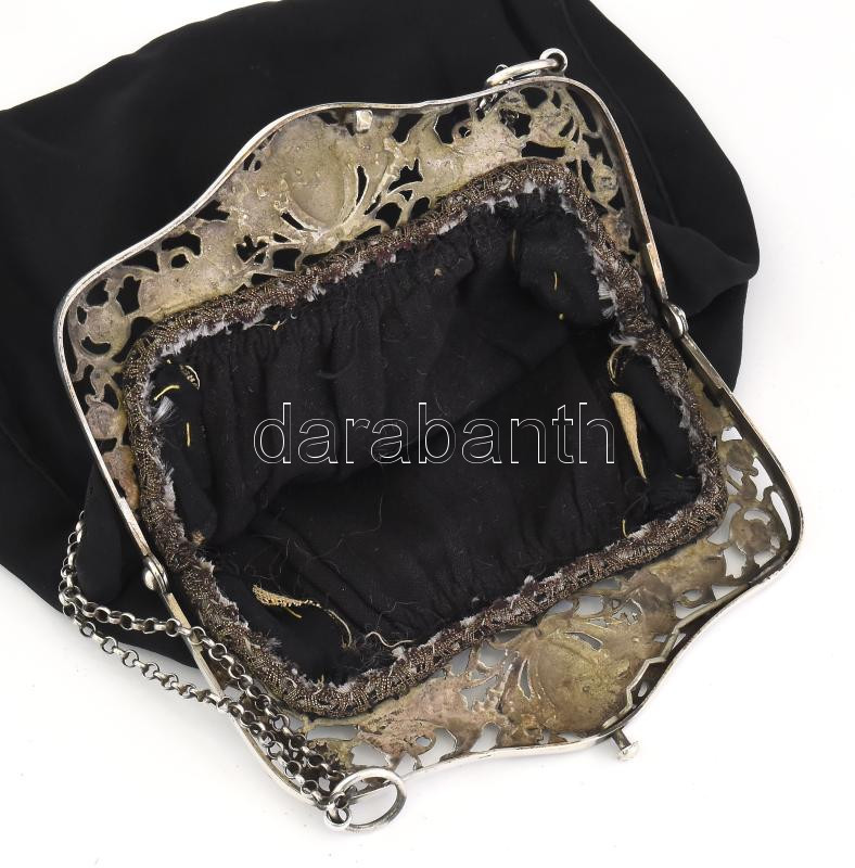 cca 1910, Német ezüst (Ag) szerelékes színházi táska, jelzett, 23x22 c...