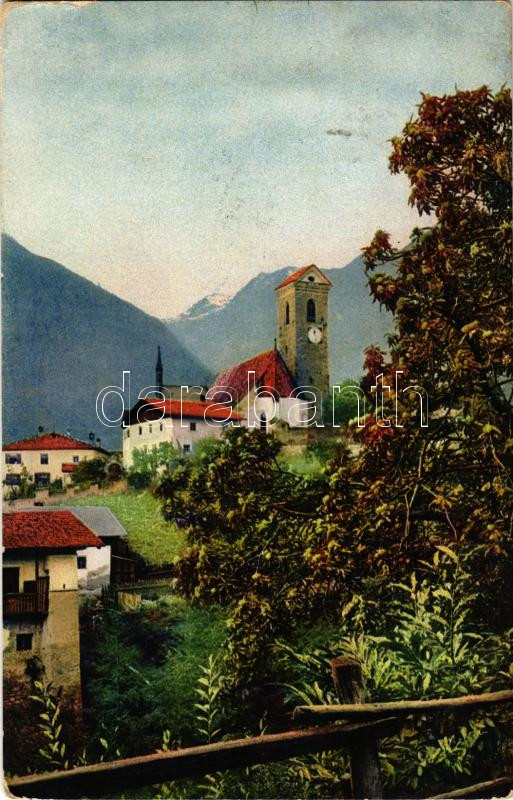 1916 Scena, Schönna bei Meran, Schenna (Sütirol); Dorf und Kirche / vi...
