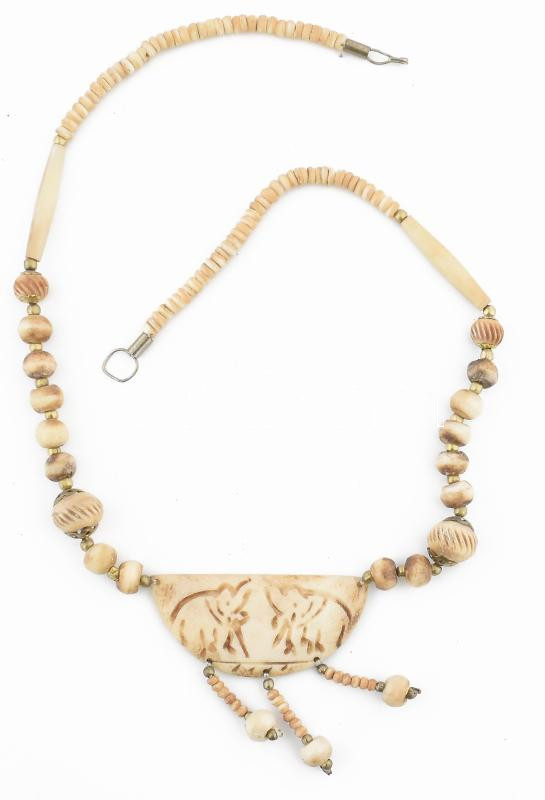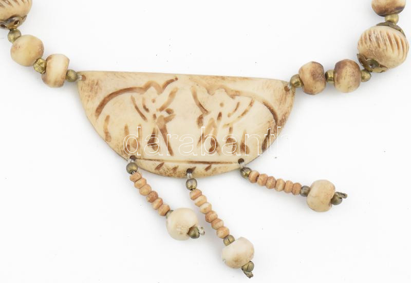 Csont nyakék, faragott medál résszel, h: 60 cm