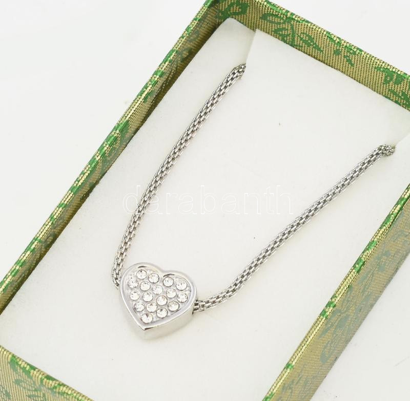 Markazit berakásos szív medálos nyaklánc, díszdobozban