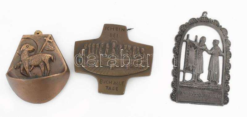 3 darab klf bronz és ón kegytárgy falidísz, h: 11 cm alatt