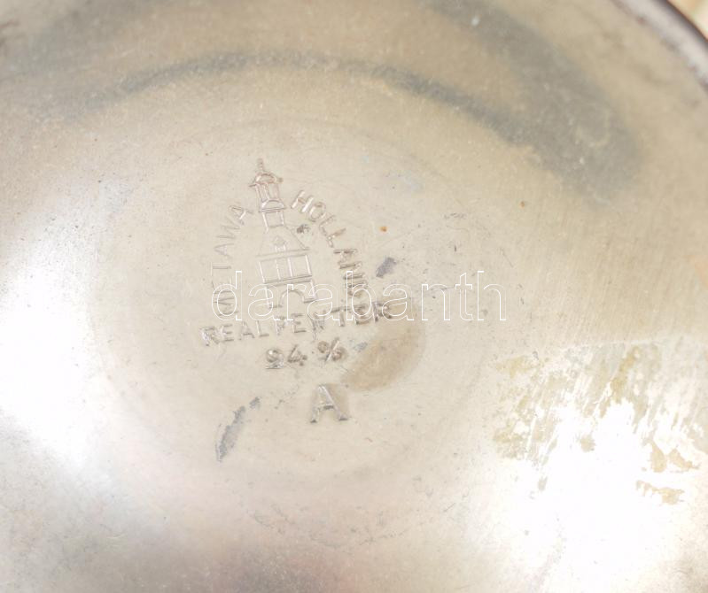 Nagy ón tárgy tétel tálcán, 15 darab klf tárgy, jelzettek, érdekes dar...