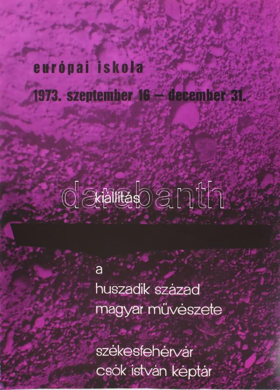 1973 Európai Iskola, kiállítás, a XX. század magyar művészete, Székesfehérvár, Csók István Képtár, plakát, ofszet, papír, Offset nyomda, hajtásnyomokkal, apró lapszéli szakadásokkal, 82x57,5 cm