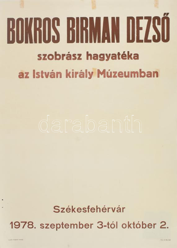 1978 Bokros Birman Dezső szobrász hagyatéka az István király Múzeumban... https://www.darabanth.com/en/484-Online-auction/484.0/Art-and-other-collectibles/Posters~1000014/1978-Bokros-Birman-Dezso-szobrasz-hagyateka-az-Istvan-kiraly-Muzeumban-kiallitasi-plakat-~II3292916