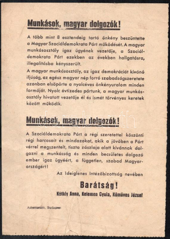 1946 A Képes figyelő c. magazin két száma, benne a magyar háborús bűnösök perével, Szálasi kivégzéséről közölt képekkel + egy korabeli Mszdp röplap