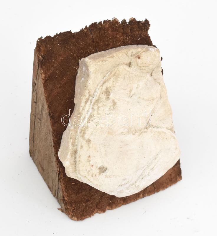 Nagy Sándor (1923-2017): Imádkozó. Faragott és vésett kő, fa talapzaton,, jelzés nélkül, teljes m: 10 cm
