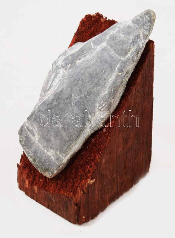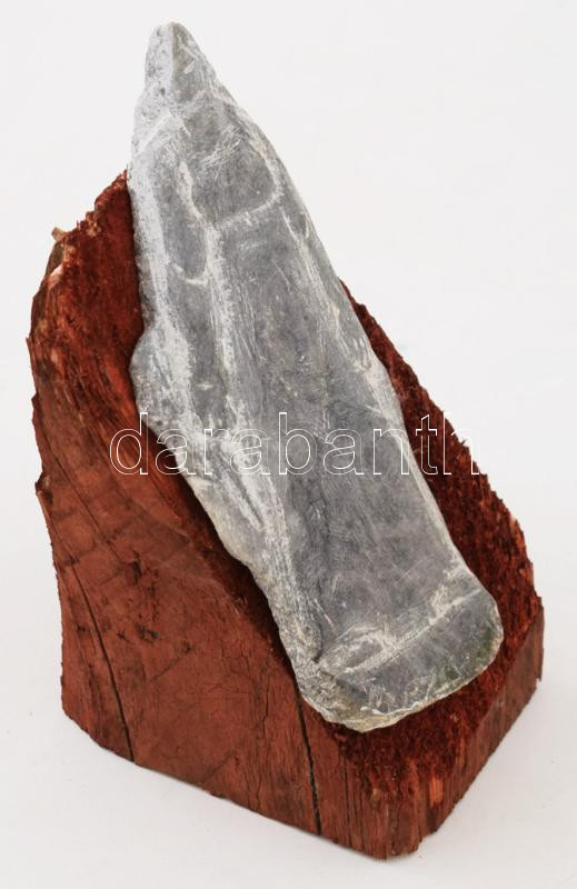 Nagy Sándor (1923-2017): Nőalak. Faragott és vésett kő, fa talpazaton, jelzés nélkül, m: 14 cm