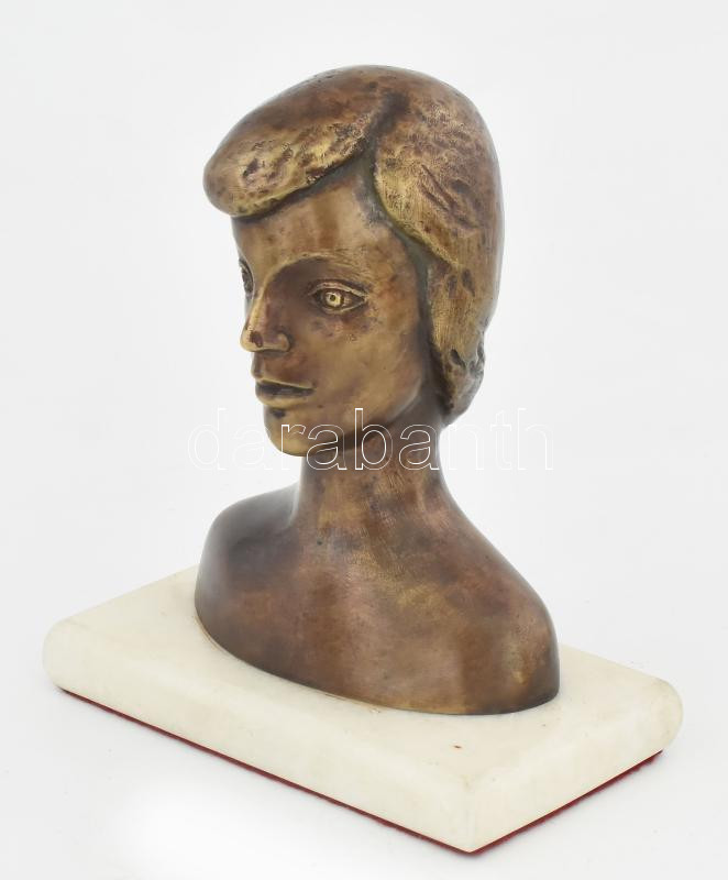 Tőrös Gábor (1934-2021): Női büszt. Öntött, patinázott bronz, jelzett. márvány talapzaton. m: 17,5 cm