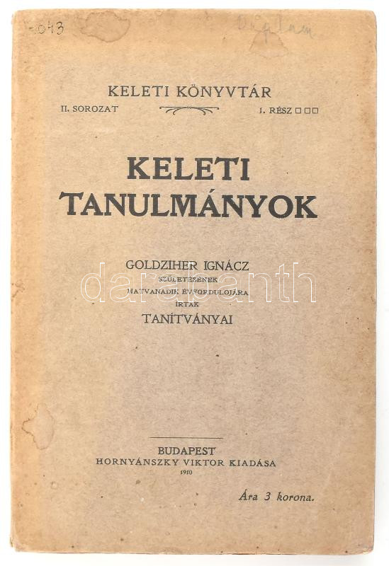 Keleti tanulmányok. Goldziher Ignácz születésének hatvanadik évforduló... https://www.darabanth.com/en/484-Online-auction/484.0/Books/Books-History~2000124/Keleti-tanulmanyok-Goldziher-Ignacz-szuletesenek-hatvanadik-evfordulojara-irtak-tanitva~II3294274