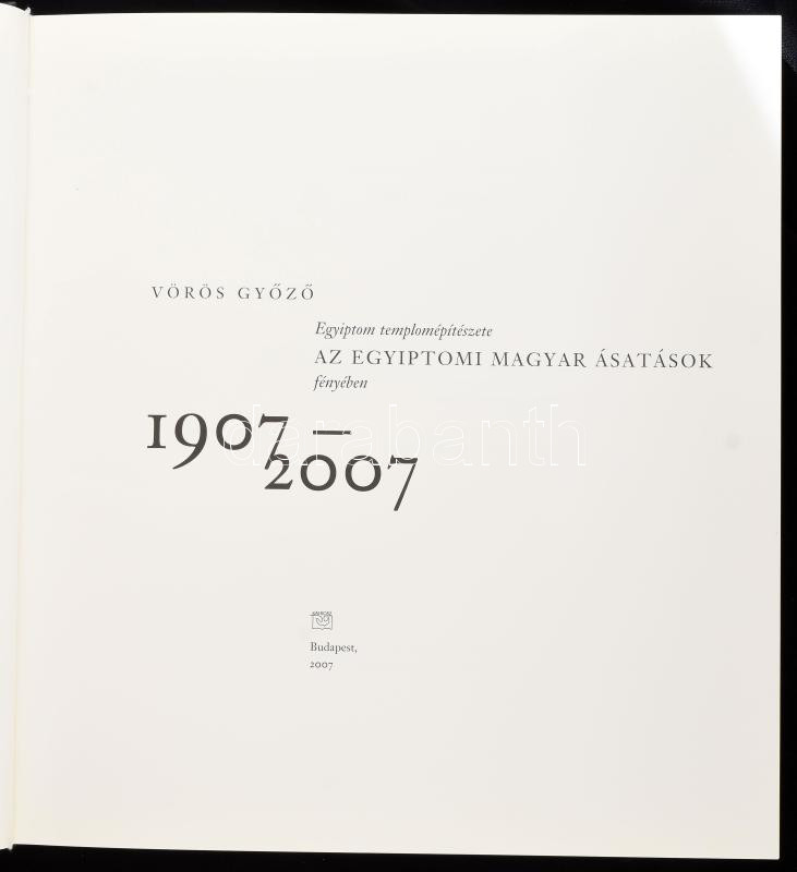 Vörös Győző: 1907-2007. Egyiptom templomépítészete az egyiptomi magyar... https://www.darabanth.com/en/484-Online-auction/484.0/Books/Books-History~2000124/Voros-Gyozo-1907-2007-Egyiptom-templomepiteszete-az-egyiptomi-magyar-asatasok-fenyeben~II3308420