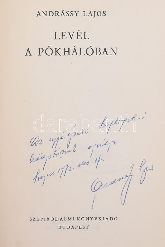 https://www.darabanth.com/en/484-Online-auction/484.0/Books/Books-Other-rarities~2000122/Andrassy-Lajos-Level-a-pokhaloban-DEDIKALT-Bp-1971-Szepirodalmi-Kiadoi-egeszvaszon-~II3293126