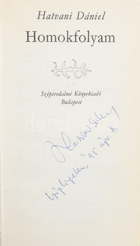 https://www.darabanth.com/en/484-Online-auction/484.0/Books/Books-Other-rarities~2000122/Hatvani-Daniel-Homokfolyam-ALAIRT-Bp-1984-Szepirodalmi-Kartonalt-papirkotes-javitot~II3293077