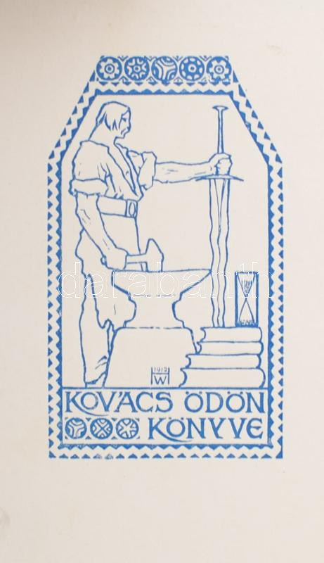 Ex libris-szel: Kovács Ödön könyve, szecessziós exlibris, klisé, papír, jelzett a dúcon (WH/HW 1912?), 17x10 cm.