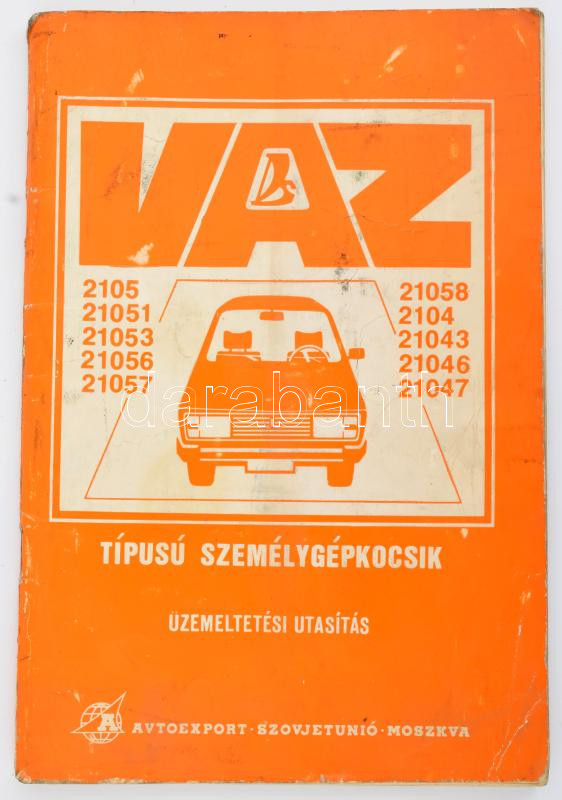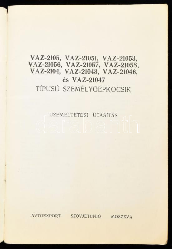 VAZ-2105, VAZ-21051, VAZ-21053, VAZ-21056, VAZ-21057, VAZ-21058, VAZ-2104, VAZ-21043, VAZ-21046 és VAZ-21047 típusú személygépkocsik üzemeltetési utasítás. Kissé foltos papírkötés, 80p