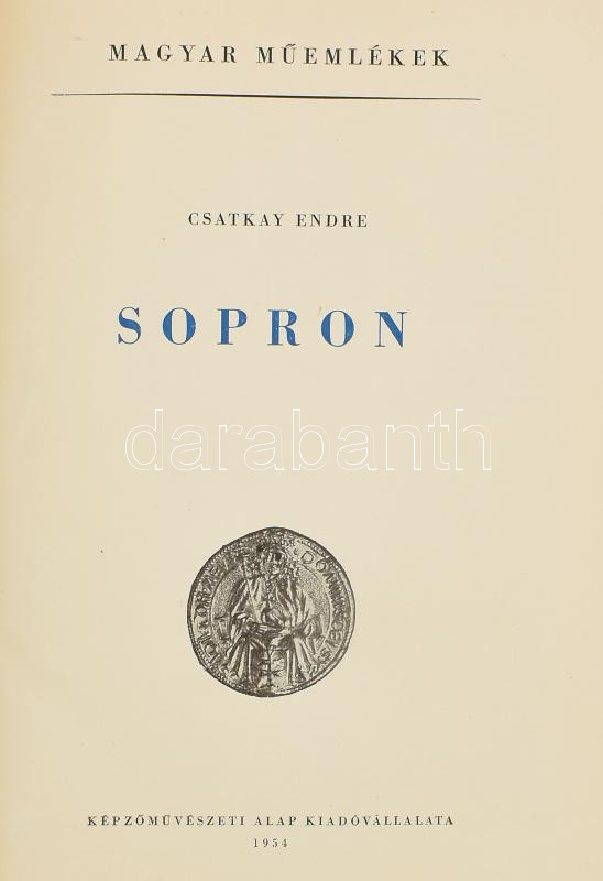 Csatkay Endre: Sopron. Magyar Műemlékek. 1954, Képzőművészeti Alap. Ajándékozási bejegyzéssel. Kiadói félvászon kötés, kopottas állapotban.