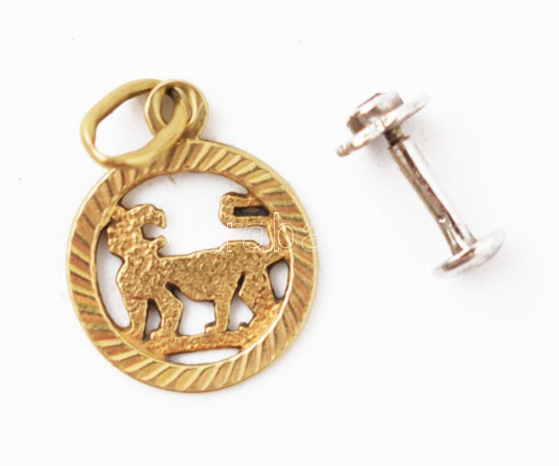 Oroszlán medál és rubinos piercing. 14K arany (Au) jelzett össz br 1,37 g