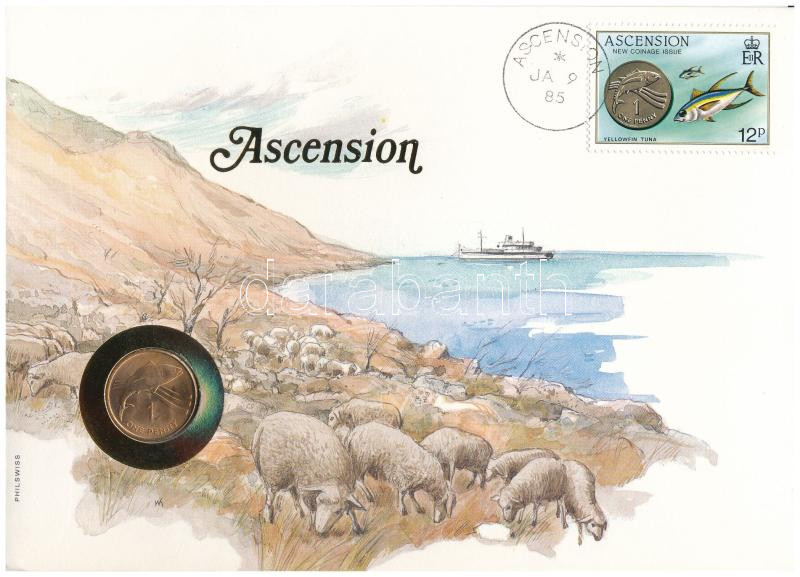 Ascension-sziget 1984. 1p bronz "II. Erzsébet" felbélyegzett... https://www.darabanth.com/en/484-Online-auction/484.0/Numismatics/Envelopes-with-Coins-and-Banknotes~500005/Ascension-sziget-1984-1p-bronz-II-Erzsebet-felbelyegzett-boritekban-belyegzessel-nemet-~II3266493