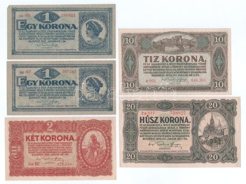 https://www.darabanth.com/en/484-Online-auction/484.0/Numismatics/Hungarian-Banknotes~500008/1920-1K-20K-5db-4xklf-TXF-F-szep-papir~II3313390