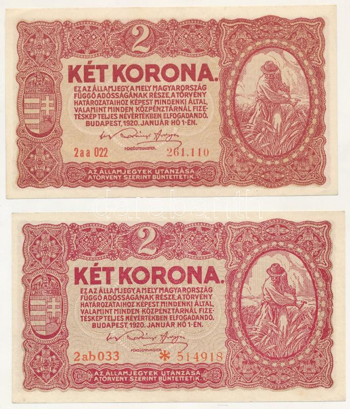 https://www.darabanth.com/en/484-Online-auction/484.0/Numismatics/Hungarian-Banknotes~500008/1920-2K-2x-ket-kulonbozo-sorszamtipussal-2aa-022-261110-es-2ab-033-514918-TAU~II3281364