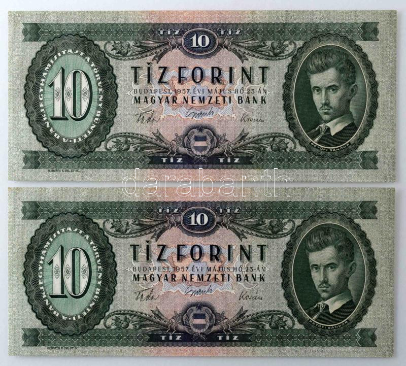 https://www.darabanth.com/en/484-Online-auction/484.0/Numismatics/Hungarian-Banknotes~500008/1957-10Ft-2x-sorszamkovetok-A-084-064123-A-084-064124-TUNC-AU-Adamo-F4~II3286358