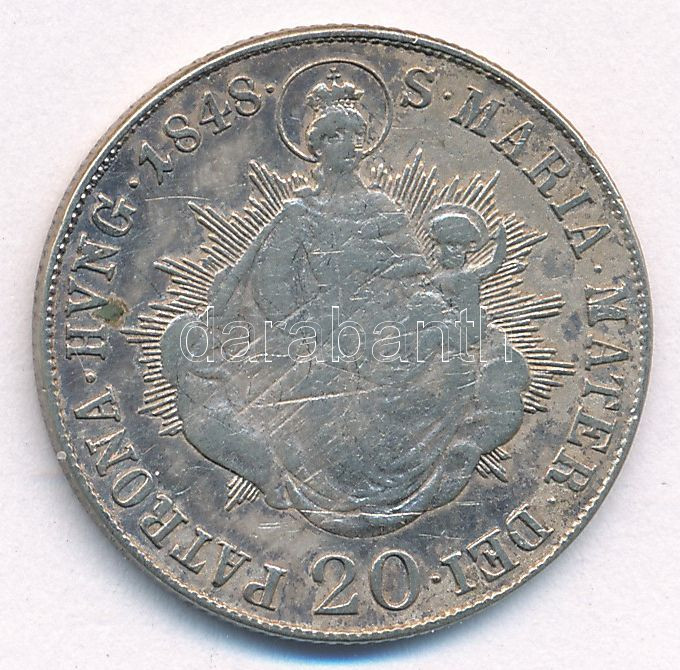 https://www.darabanth.com/en/484-Online-auction/484.0/Numismatics/Hungarian-coins-and-coins-with-Hungarian-mint-marks~500009/1848B-20kr-Ag-V-Ferdinand-TVF-juszt-Hungary-1848B-20-Kreuzer-Ag-Ferdinand-V-CVF-adjusted-~II3271828