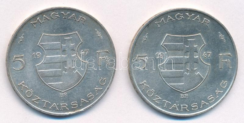 https://www.darabanth.com/en/484-Online-auction/484.0/Numismatics/Hungarian-coins-and-coins-with-Hungarian-mint-marks~500009/1947-5Ft-Ag-Kossuth-2x-TAU-XF-Adamo-F81~II3228957
