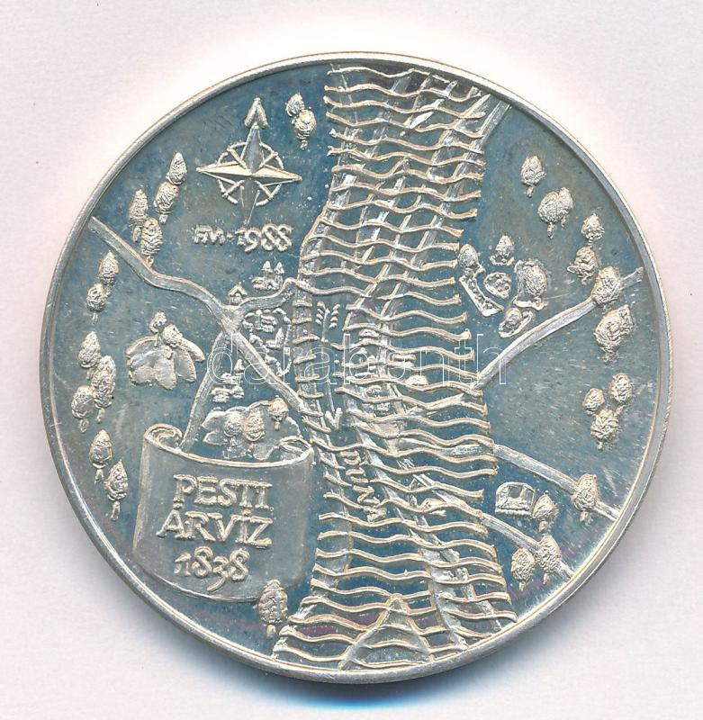 Fritz Mihály (1947-) 1988. "MÉE - A nagy árvÃz emlékére - Wesselényi Miklós / Pesti árvÃz 1838" kétoldalas jelzett Ag emlékérem (35,98g/0.835/42,5mm) T:AU (eredetileg PP), enyhén karcos