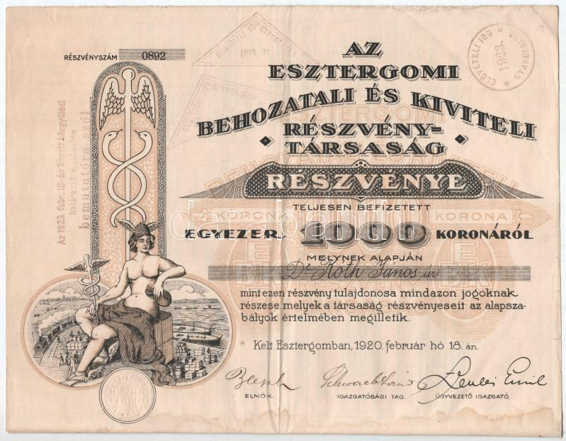 https://www.darabanth.com/en/484-Online-auction/484.0/Numismatics/Shares-and-Tickets~500006/Esztergom-1920-Esztergomi-Behozatali-es-Kiviteli-Reszvenytarsasag-reszvenye-1000K-rol-sze~II3277979