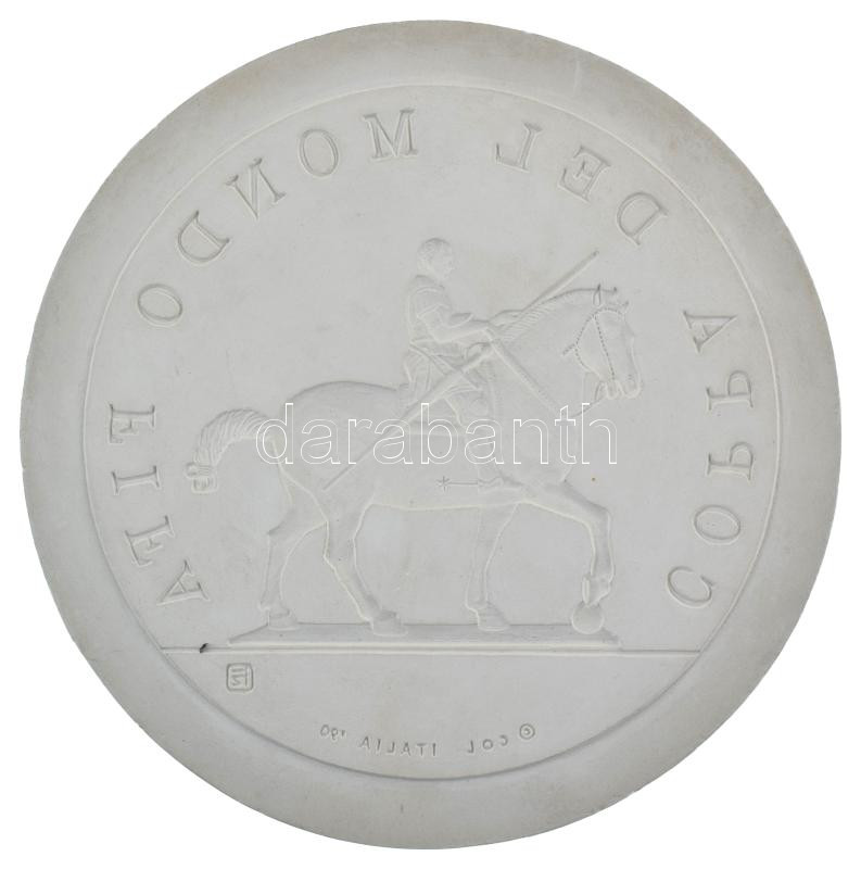 Description: Fülöp Zoltán (1951-) ~1990. "FIFA Labdarúgó Világbajnokság - Donatello Gattamelata lovas szobra" ezüst éremtervezet gipsz előlapi NEGATÍV nagyminta (160mm) T:AU