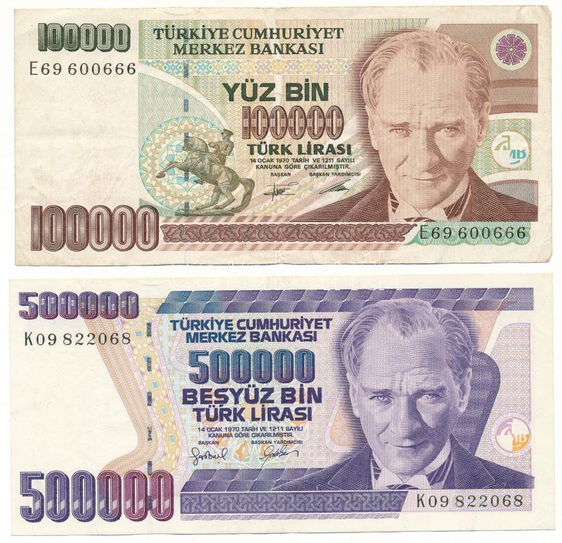 Törökország DN(1996-1999) 100.000L "E69 600666" + DN(1997) 5... https://www.darabanth.com/en/484-Online-auction/484.0/Numismatics/Worldwide-banknotes~500014/Torokorszag-DN1996-1999-100000L-E69-600666-plus-DN1997-500000L-TF-az-egyik-szep-papir3Cbr~II3280613