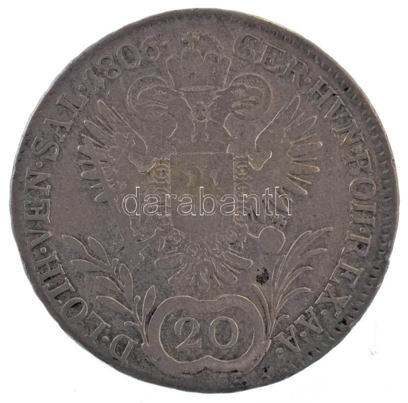 https://www.darabanth.com/en/484-Online-auction/484.0/Numismatics/Worldwide-silver-and-metal-coins~500015/Ausztria-1806A-20kr-Ag-I-Ferenc-6-49g-TF-patina3Cbr-3E-Austria-1806A-20-Kreuzers-Ag-Francis-~II3274126