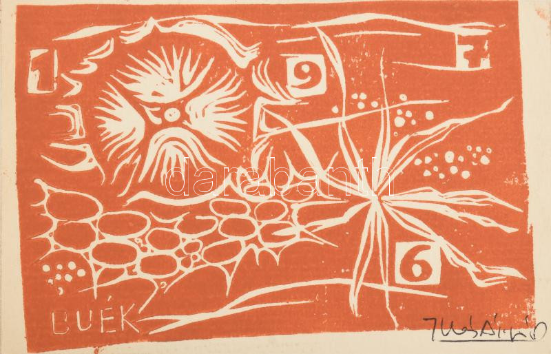Illés Árpád (1908-1980): BUÉK 1967. Linómetszet, papír, jelzett. 10,5x...