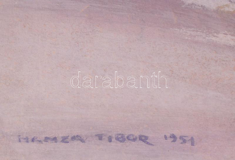 Hamza Tibor (1908-1967 v. 1972?): Rózsaszín-lila táj, 1951. Vegyes tec... https://www.darabanth.com/en/484-Online-auction/484.0/Paintings-and-graphics/Paintings-and-graphics~1500001/Hamza-Tibor-1908-1967-v-1972-Rozsaszin-lila-taj-1951-Vegyes-technika-karton-jelezve-jobb~II3297078