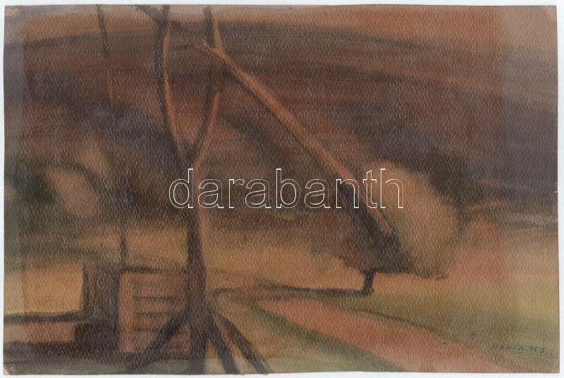 Hamza Tibor (1908-1972): Titokzatos táj gémeskúttal, 1959. Akvarell, p... https://www.darabanth.com/en/484-Online-auction/484.0/Paintings-and-graphics/Paintings-and-graphics~1500001/Hamza-Tibor-1908-1972-Titokzatos-taj-gemeskuttal-1959-Akvarell-papir-jelezve-jobbra-lent-~II3296942