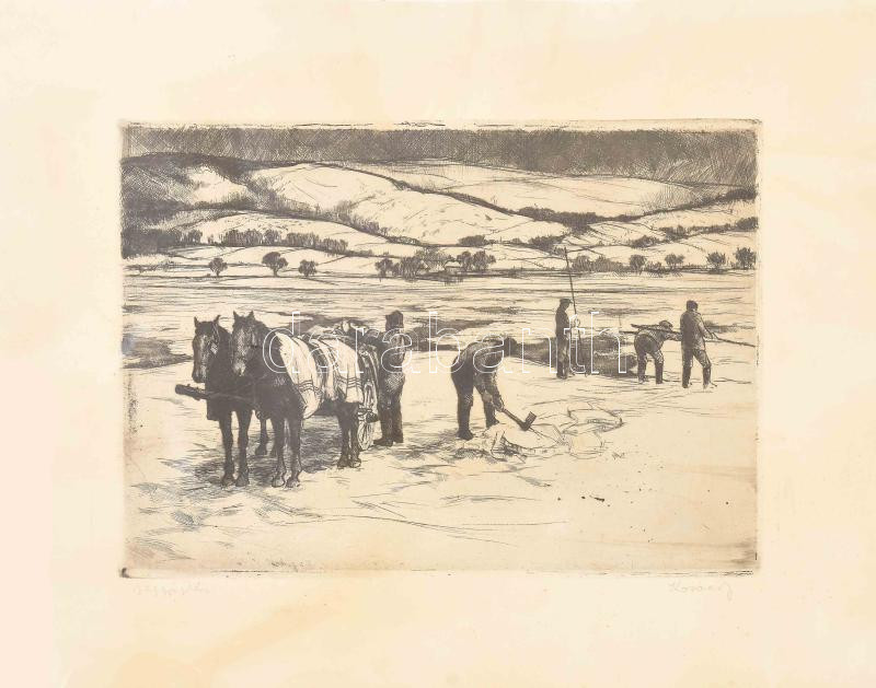 Kovács József (?-?): Jéggyűjtés. Rézkarc, papír, jelzett, kartonra kas...