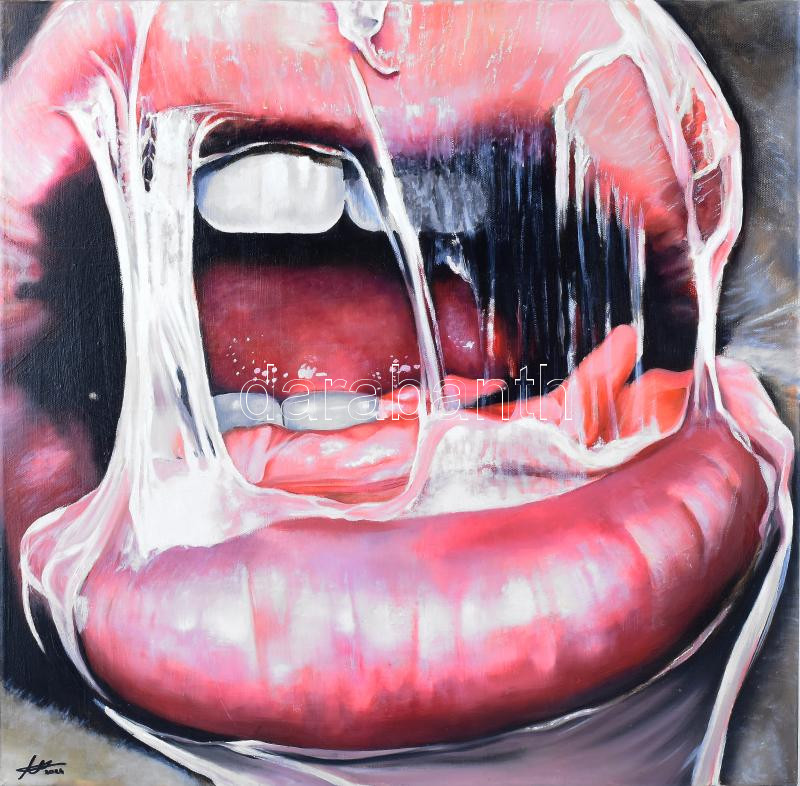 Nagy (Boglárka) Alíz (2001-): Chewing. Olaj, vászon. Jelezve balra len... https://www.darabanth.com/en/484-Online-auction/484.0/Paintings-and-graphics/Paintings-and-graphics~1500001/Nagy-Boglarka-Aliz-2001-Chewing-Olaj-vaszon-Jelezve-balra-lent-es-a-hatoldalan-58x58~II3144853