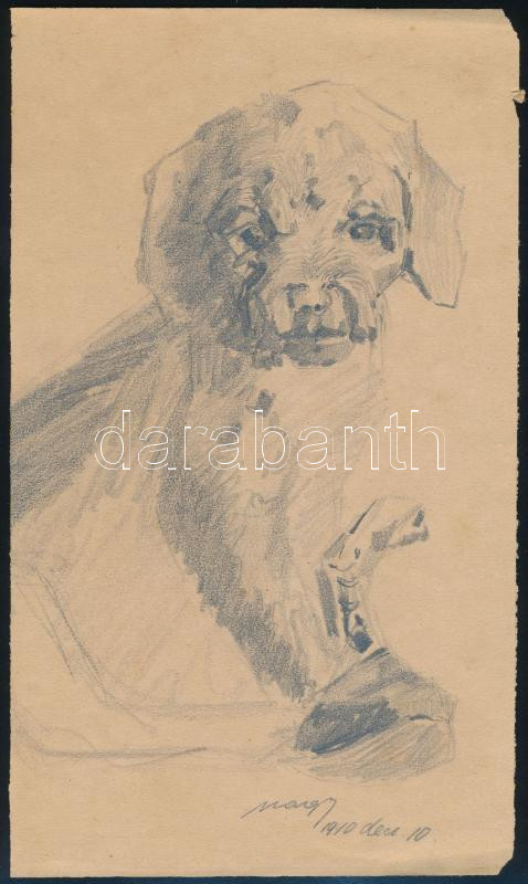 Nagy Ferenc (1892-1970): Kutya, 1910. Ceruza, papír, jelezve jobbra lent, apró lapszéli sérüléssel, 28,5×16,5 cm
